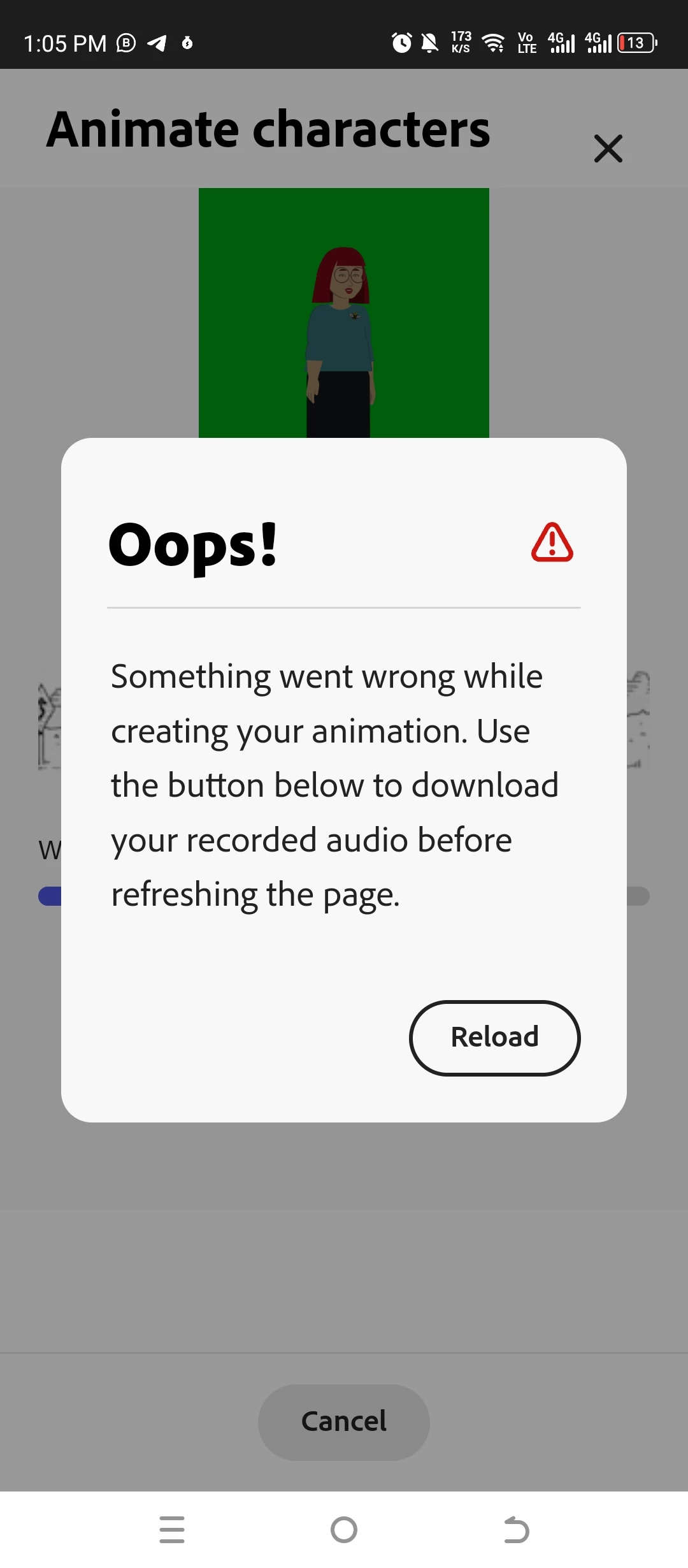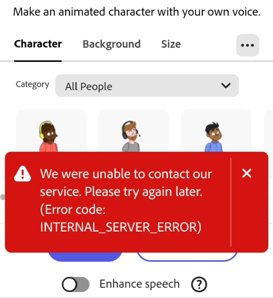 I am an educator using Adobe for my projects. Recently, I’ve encountered an issue where audio recorded from characters fails to load and shows an error.