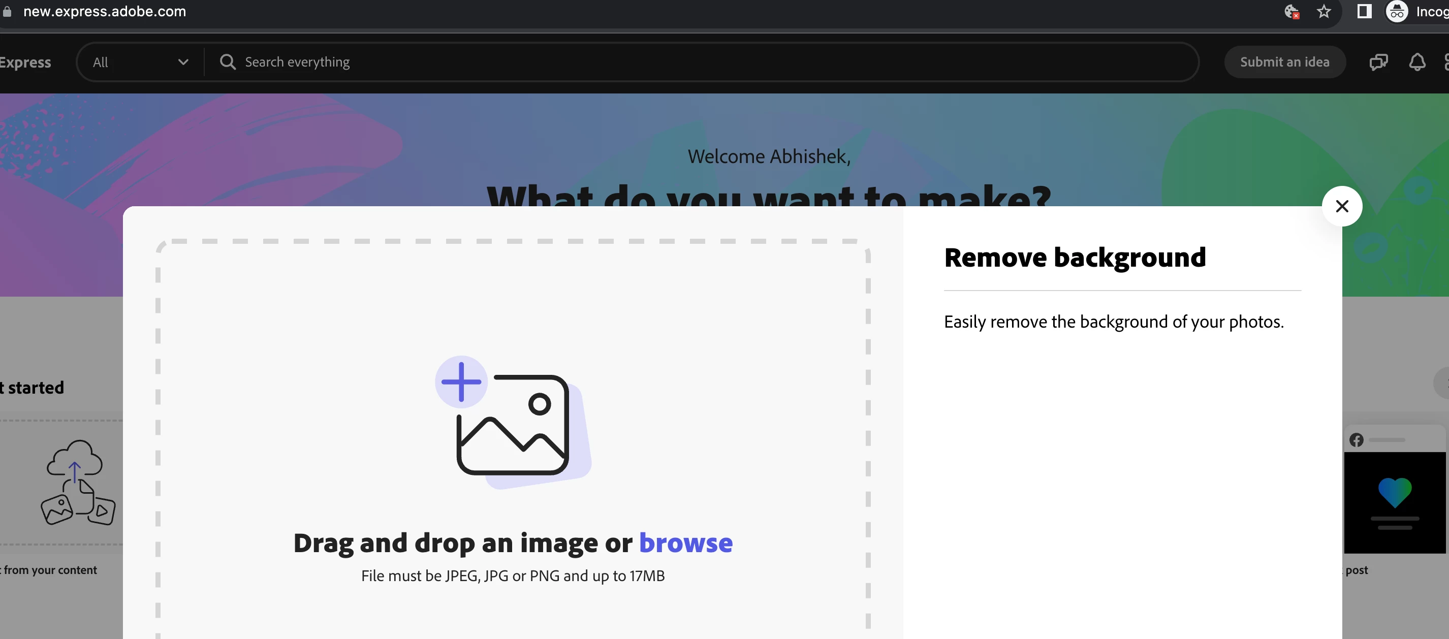 • The Remove backgrdound button from the Image panel inside the Express editor
