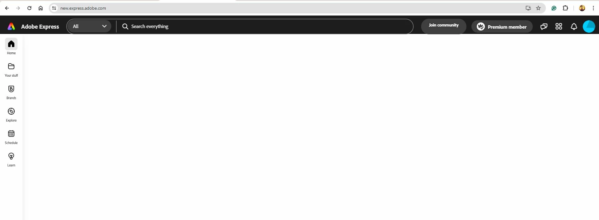 The home page is completely blank. NO options to create content. If I open an existing file, the editing menus are also blank. The share menu is blank and has been for a while. I have cleared my cache, signed in and out, disabled ad blockers, tried different browsers, and no change. I can't use the app at all now.