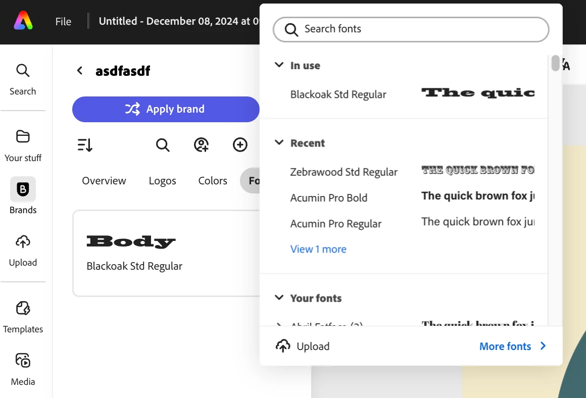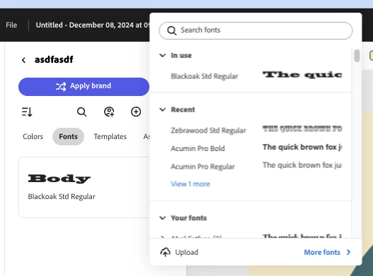 Unusual error report - When adding a font to a brand, this menu appears blurry on my Dell P2219H monitor. If I move the same menu over to my MacBook Pro screen, it's no longer blurry.