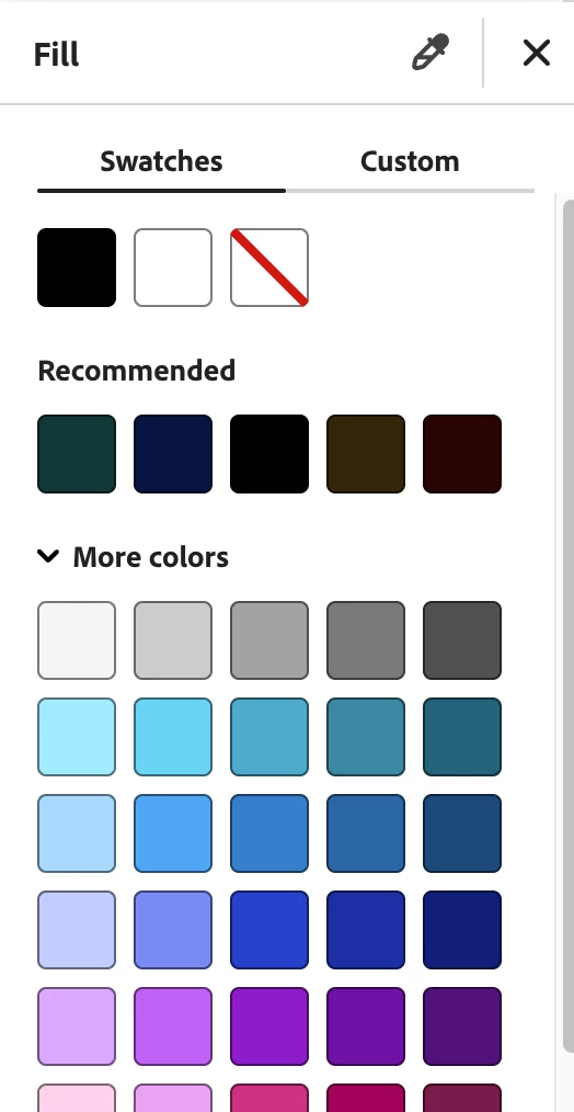 I'm not seeing our brand colors show up as a list or choices in the fill color for any type of object.