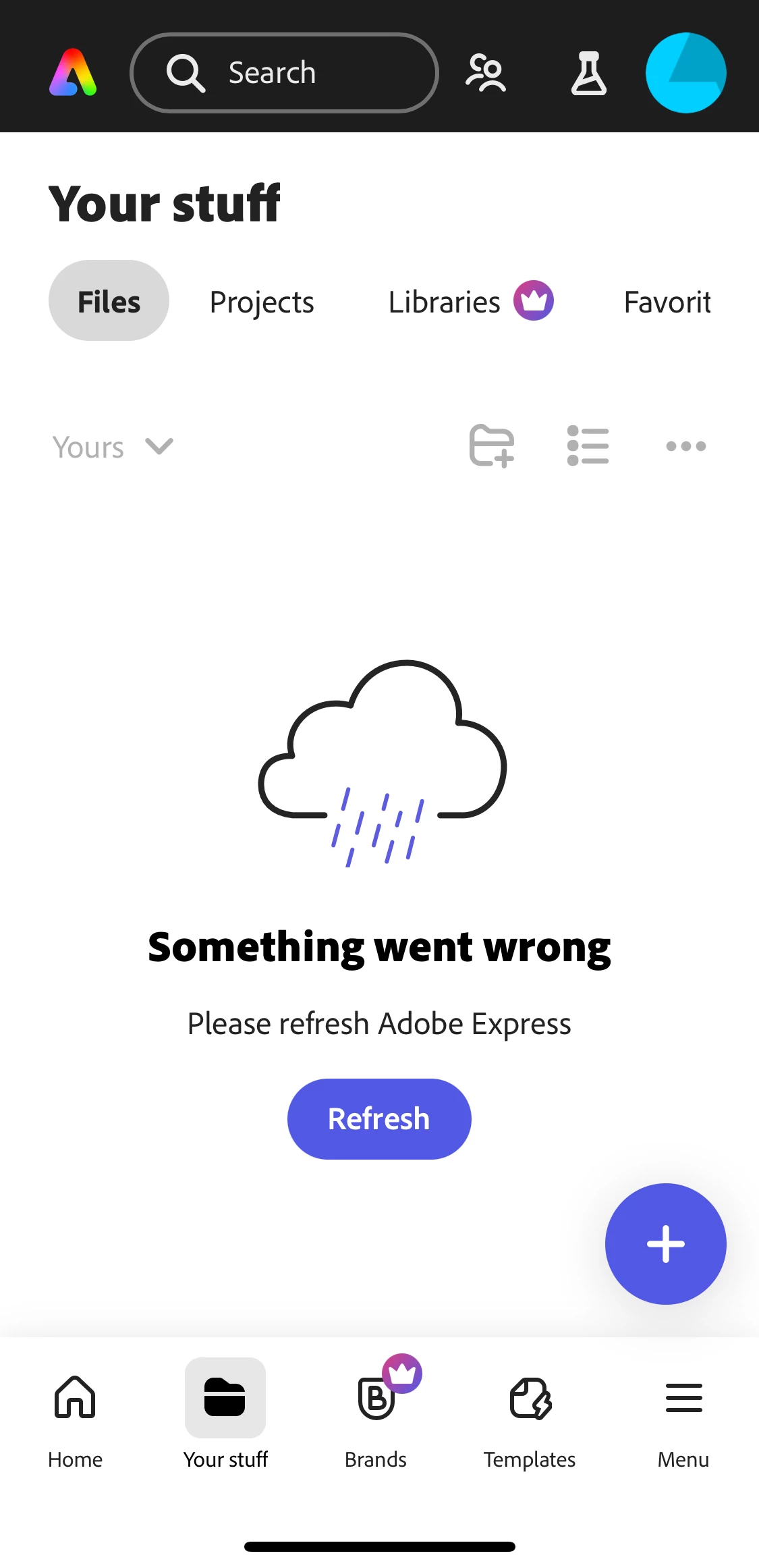 For some days now I'm not able to access my files ( shows "something went wrong") and also begin new projects
