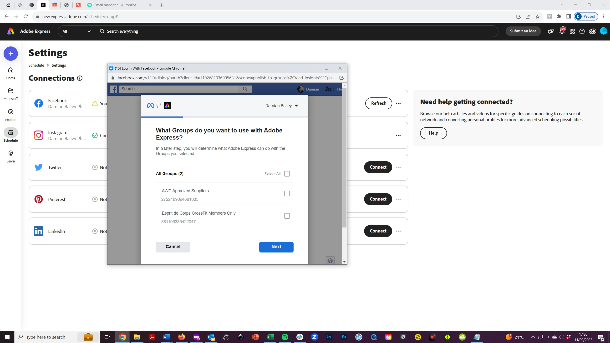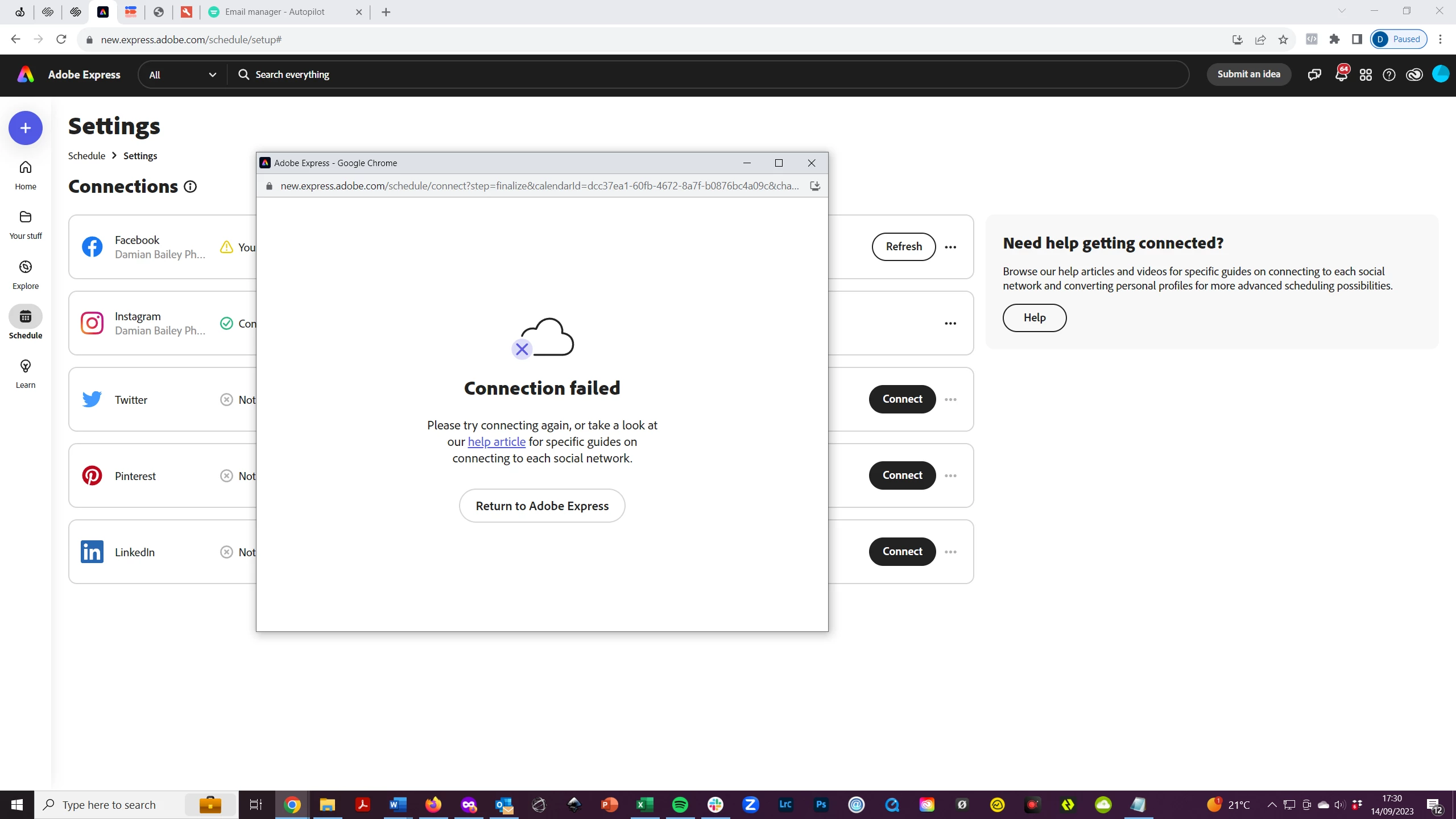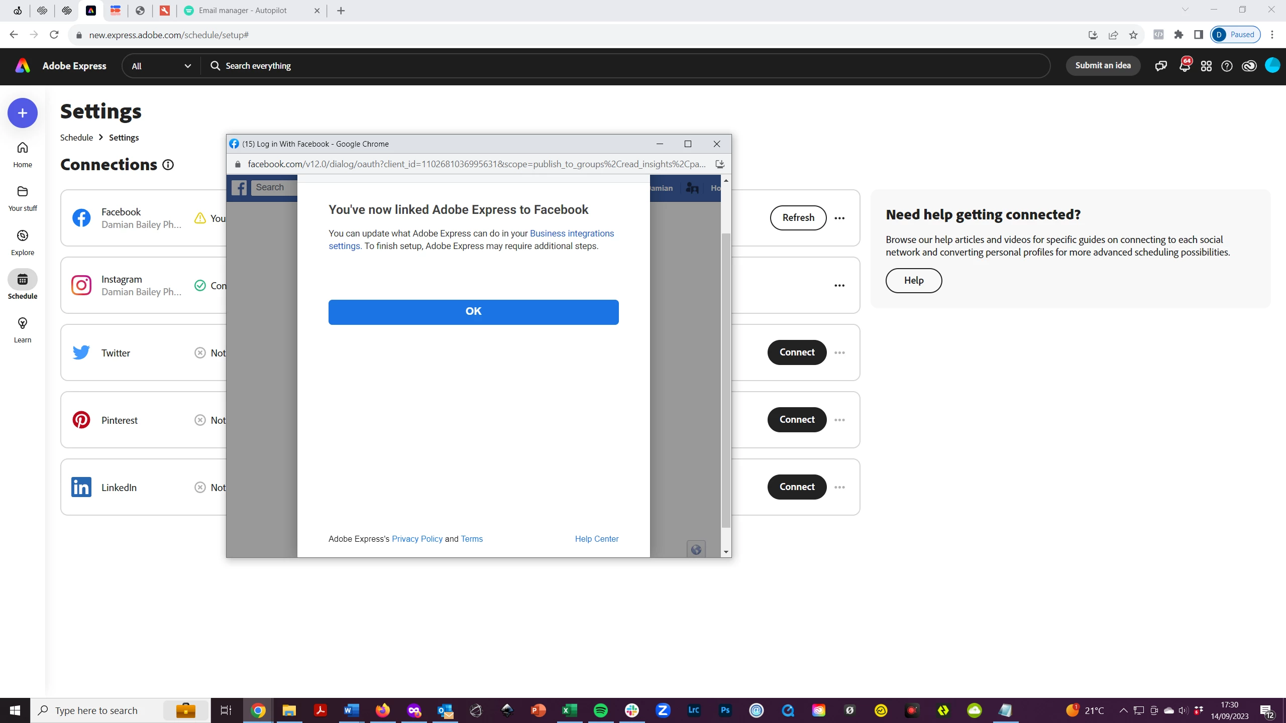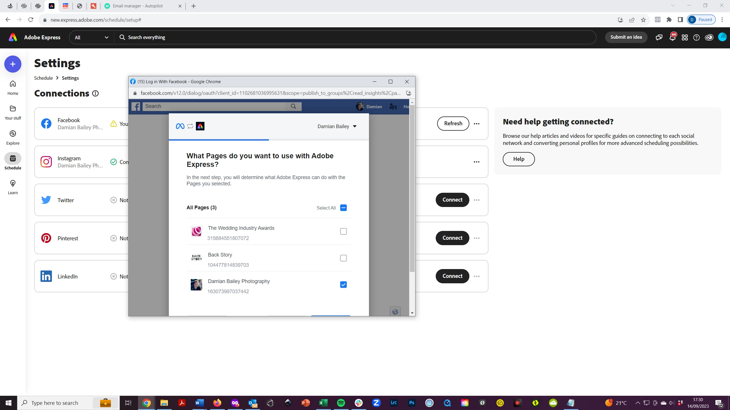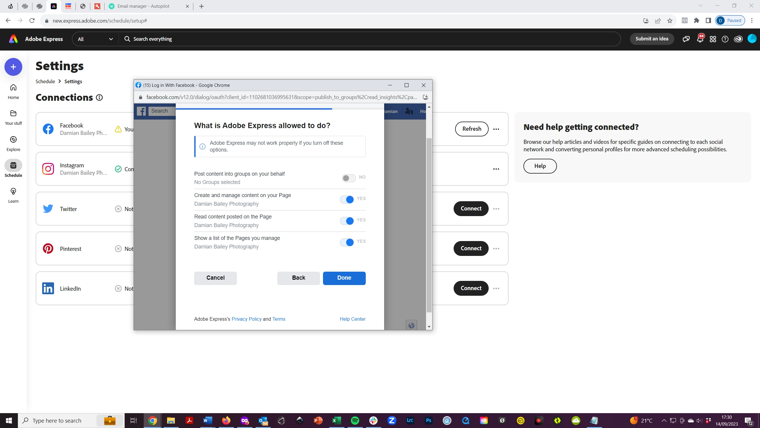 I have tried to reconnect my facebook account/refresh my facebook token several times and it just isn't working. see attached screenshots. Am i doing something wrong? Hope you can help Damian