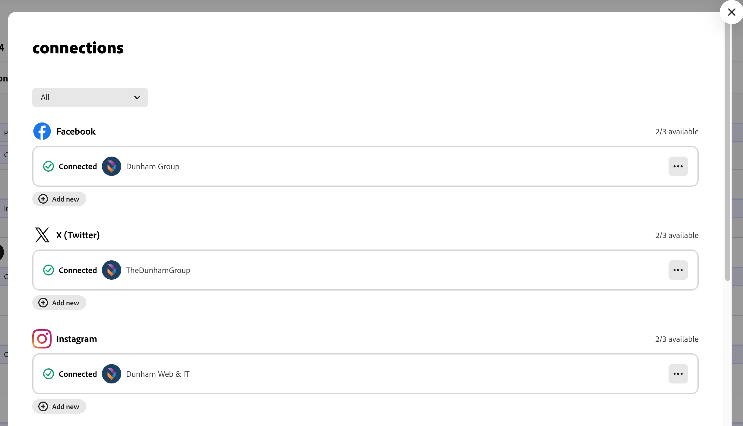 Channels are still visible and connected when I go to "Manage connections" within the project calendar, but are not visible when trying to share or schedule a post within the project or project calendar.