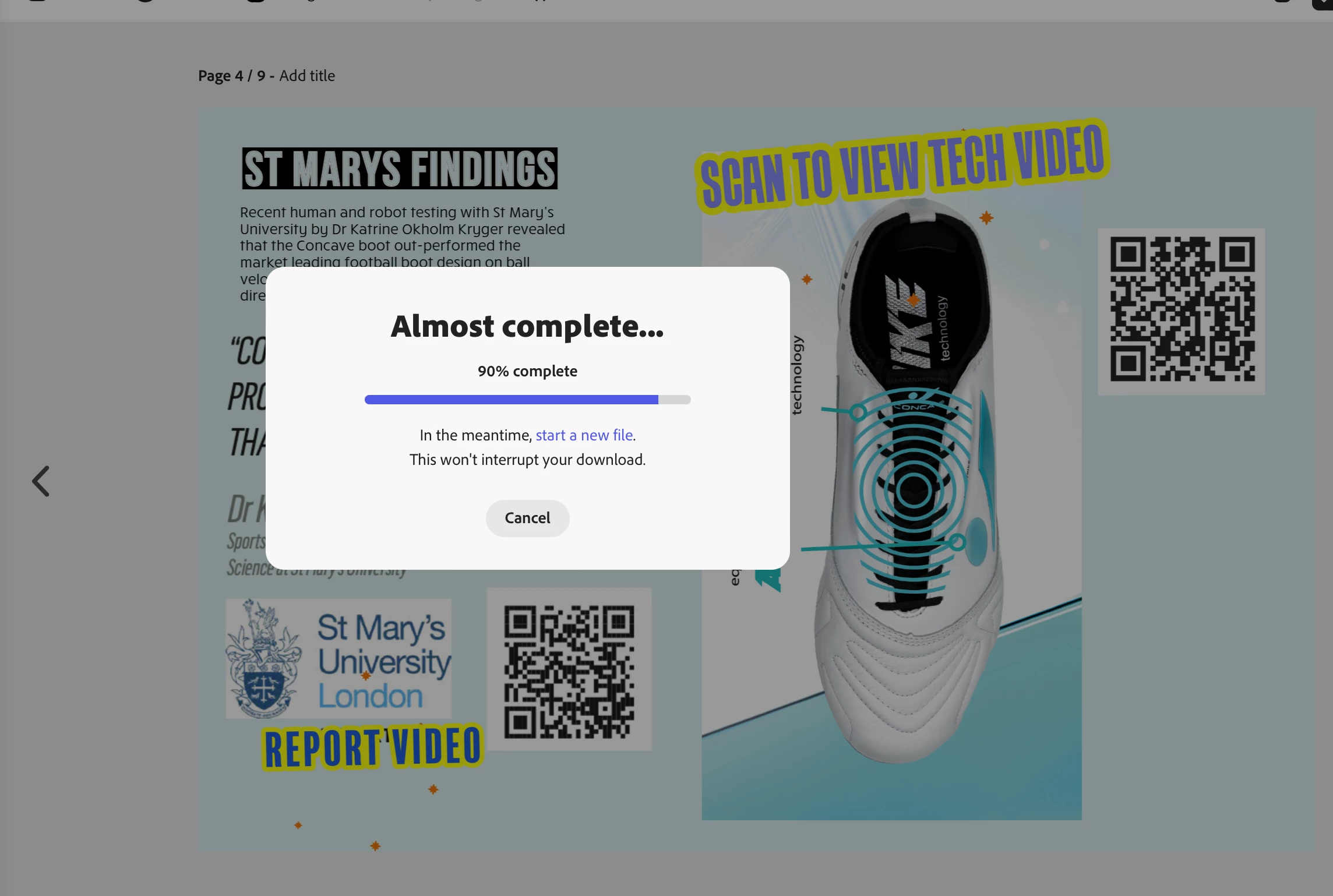 Hi Guys, I cannot seem to be able to download my artwork when I download as a PDF, the upload continuously stops at 90 %, when I download as aPNG file it downloads with no issue, I really need this work as I have spent may hours preparing it, can you please assist.