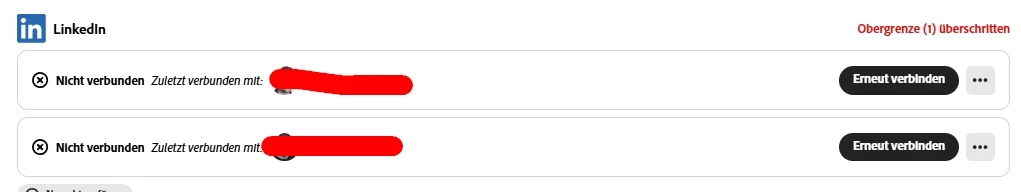 In the account overview, both LinkedIn profiles are now shown as "not connected", i could recconect them, but cant post or schedule posts on linked.