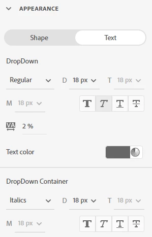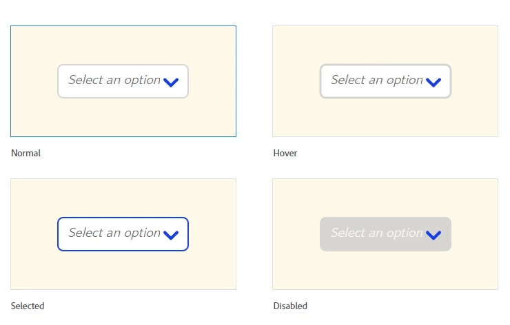 However, when I click on the dropdown menu and it switches to "Selected" state, the font reverts to what had been the default previously (Times New Roman).
