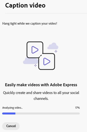 Caption Video stuck on 17%, tried on both mobile and web, same issue even after clearing cache and force stopping.