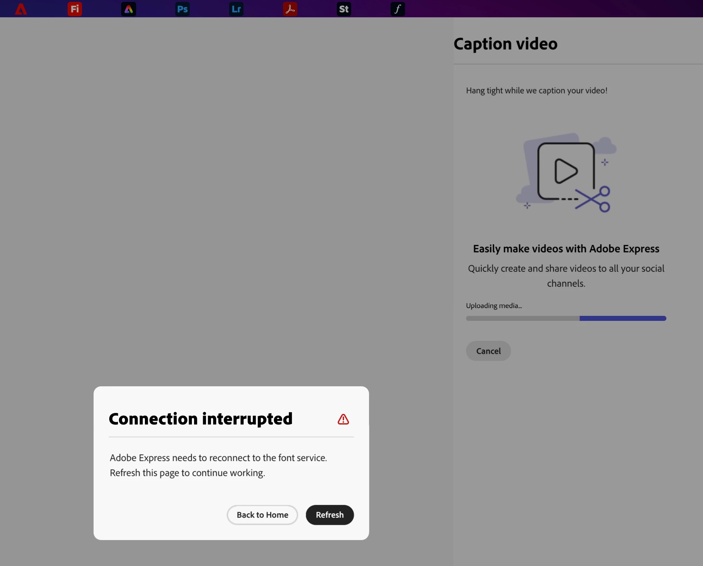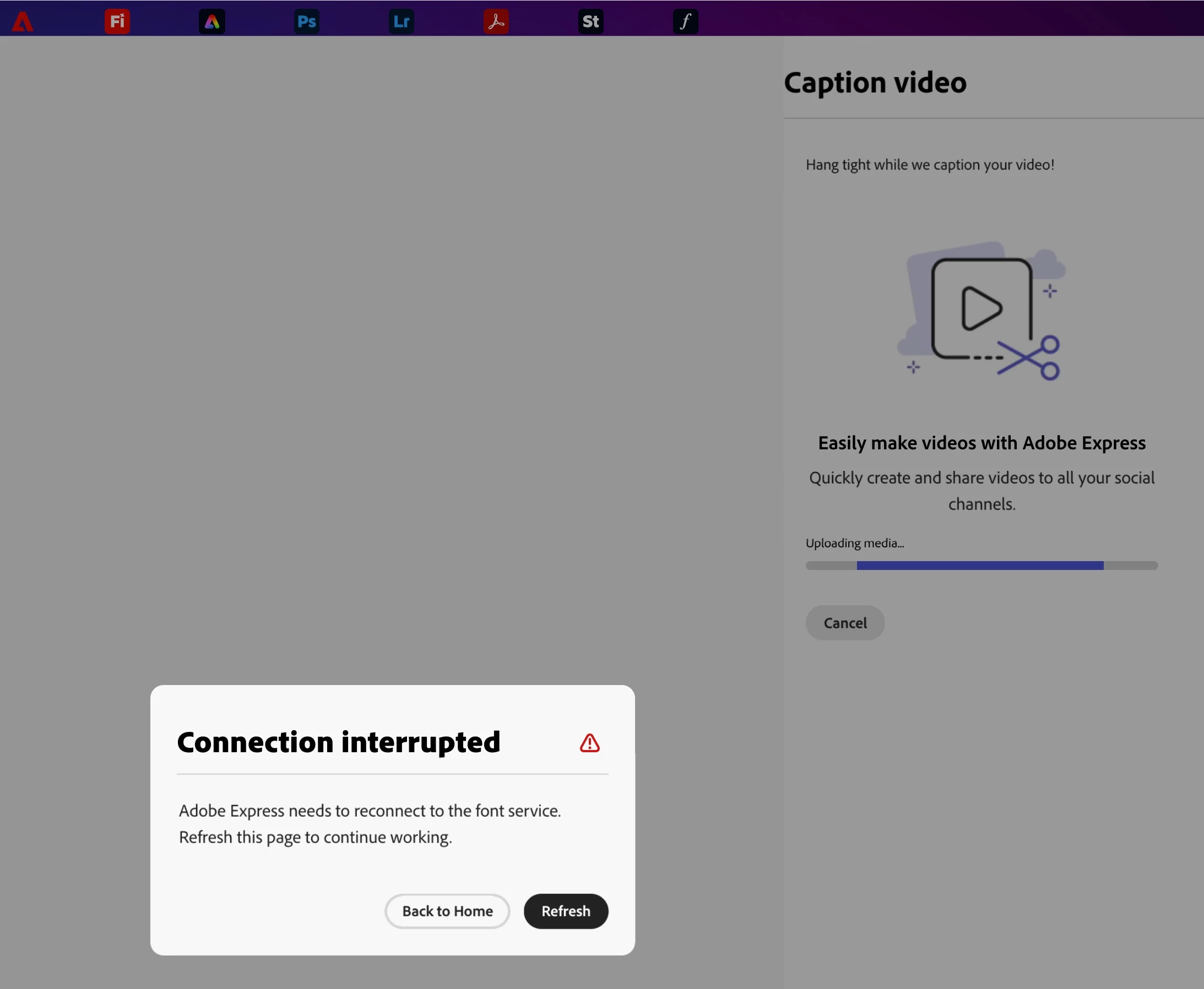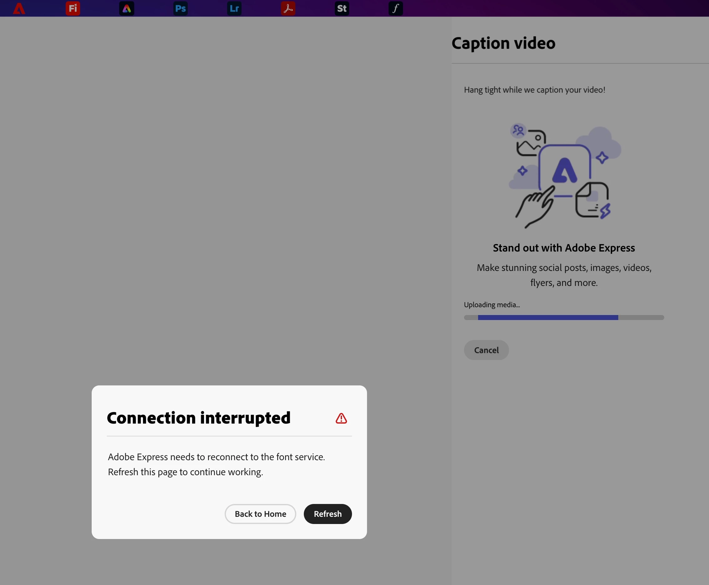 Connection interrupted error - Adobe express