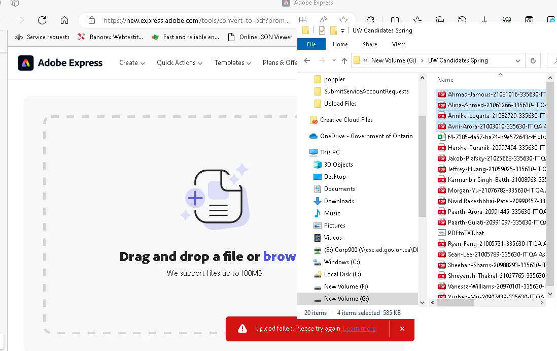 The feature description is misleading, the name and description suggests that I should be able to load and convert multiple files at once. Yet the file upload only supports selection of one file at a time, and drag and drop shows an error which explains nothing about why I am seeing an error, and links to a site without the context of the error in place. After the feature wasted my time, I came to the conclusion that it only supports converting one file at a time, which is not helpful at all. I want to be able to drop multiple files, up to 100MB total size, and convert them to i.e. Rich text file. The screen says we support files up to 100MB, does not say 1 file up to 100MB. but dragging several files returns an error.
