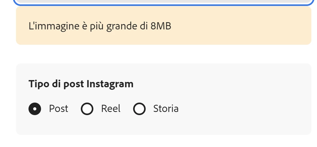 MMartinaP_ParticipantForum|Forum|2 years agoOctober 6, 2023dimensione immagineForum|Forum|2 years agoOctober 6, 20230 replies61 viewsquando provo a pianificare un post solo sul canale instagram il post supera gli 8 MB anche quando cambio l'immaginePianificatoreIT
