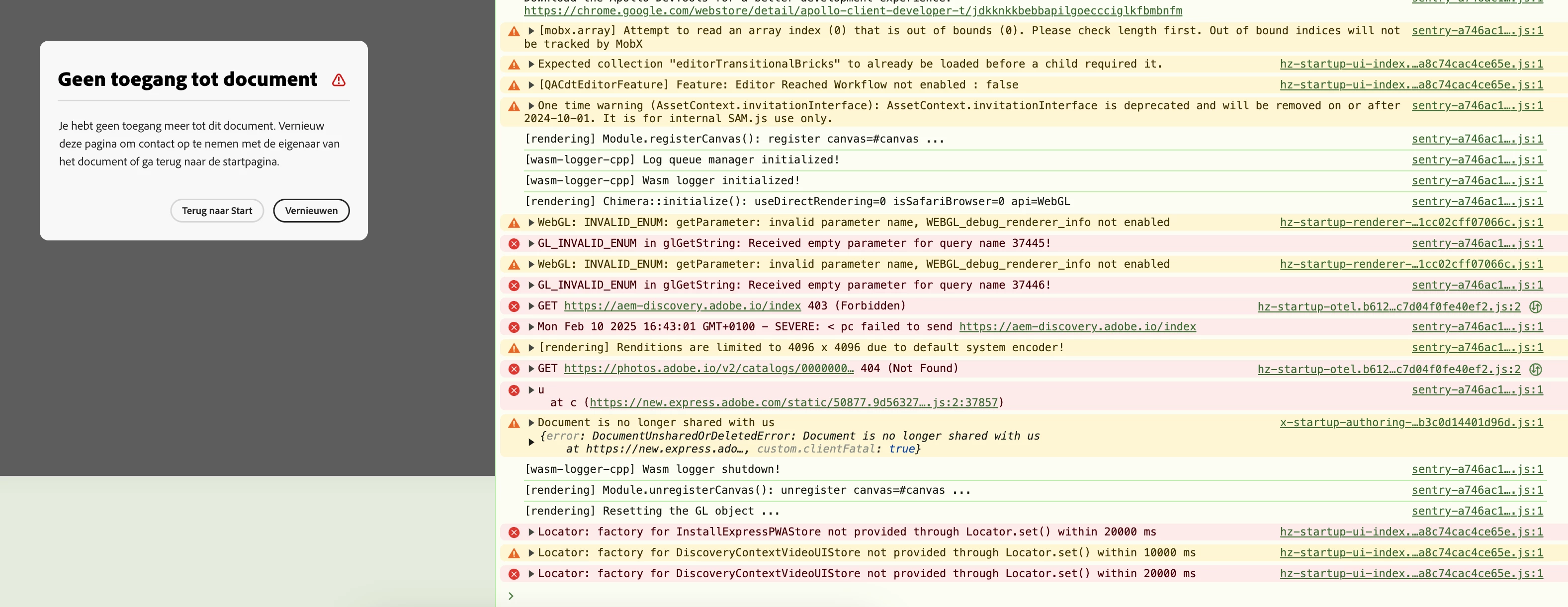 when I open a file in Adobe Express (Brave Browser, MacOS) it loads, then a popup shows up requesting me to refresh the page.
