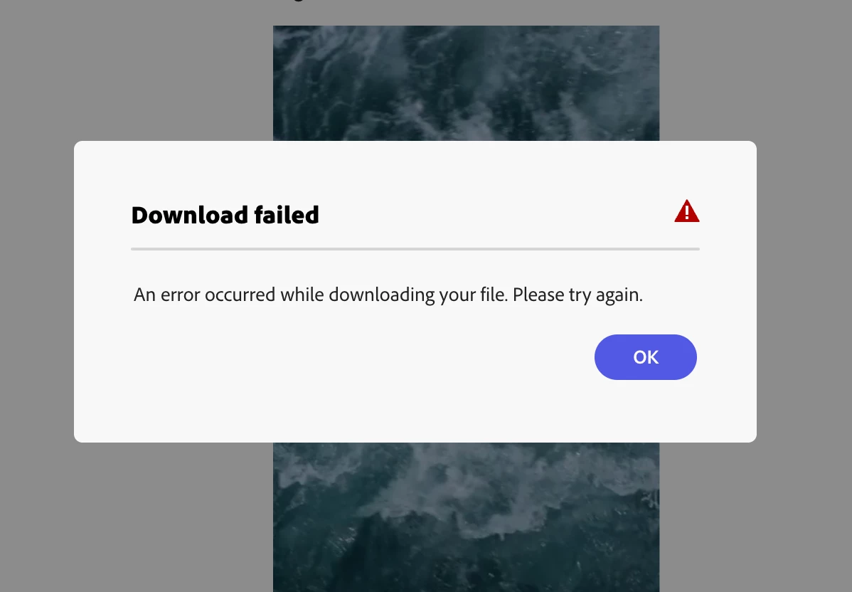We're sorry for the delay. Do you have lots of (image/video) assets on a single page; say more than a few hundred? If so, you might need to split the video into multiple pages (e.g., duplicate the page, trim the timeline to the first half on the first page, to the second half on the second page), download the pages individually, then merge them togther using the merge video quick action.