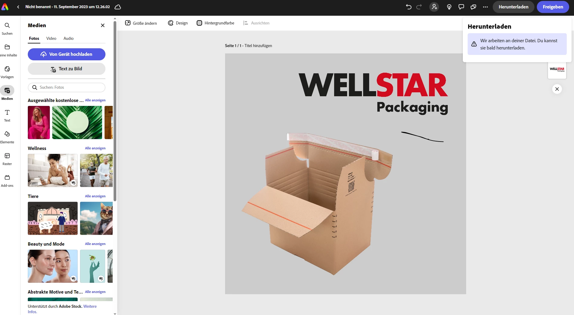 Ich bekomme immer diese Anzeige: "Wir arbeiten an deiner Datei. Du kannst sie bald herunterladen". Aber leider funktioniert das nicht., wenn ich Inhalte selbst erstellt habe (war in der alten Version nie ein Problem). Ich kann nur Inhalte herunterladen, die aus Vorlagen erstellt wurden und an denen ich nichts verändert habe.