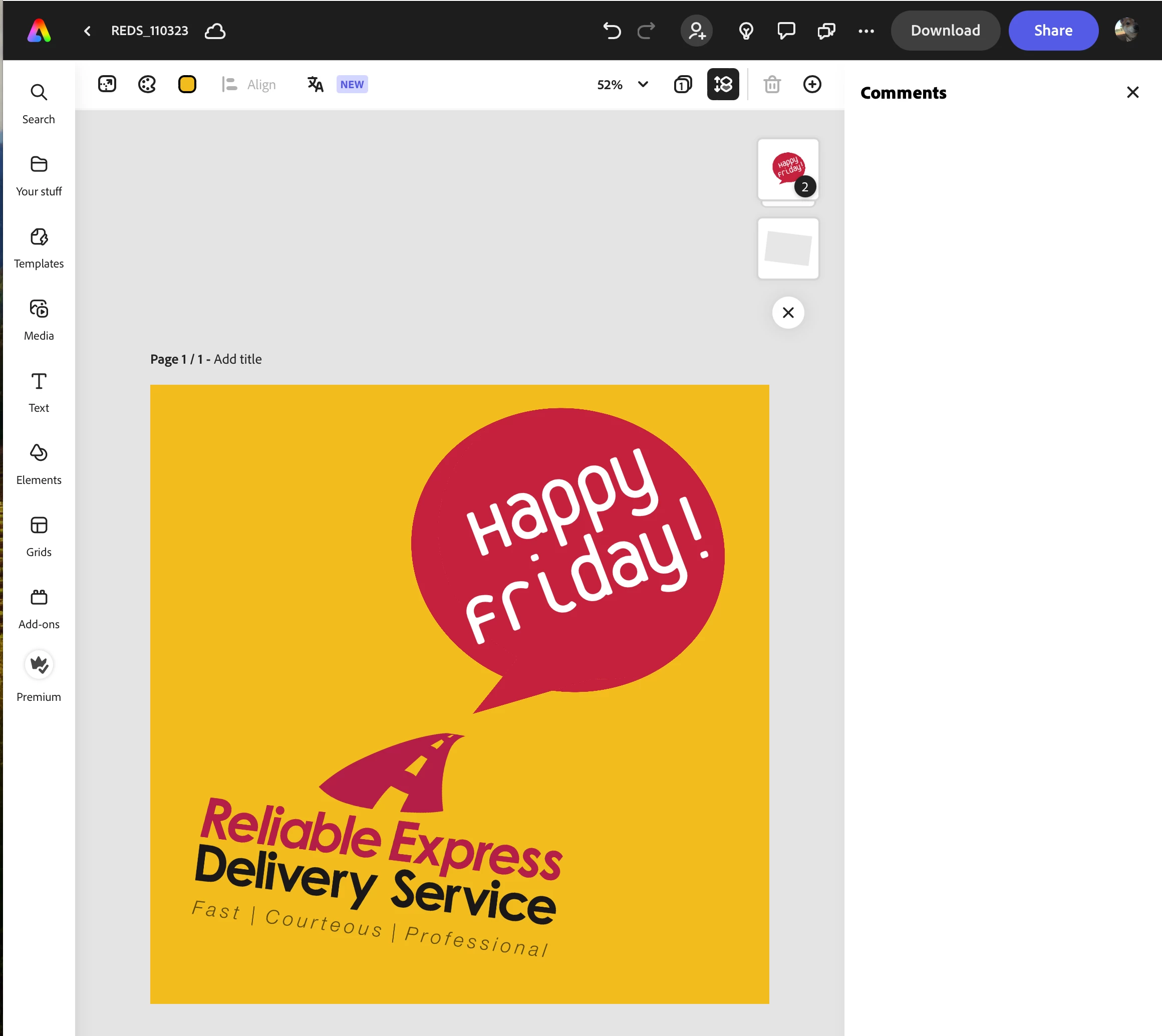 Download of post created in Adobe Express