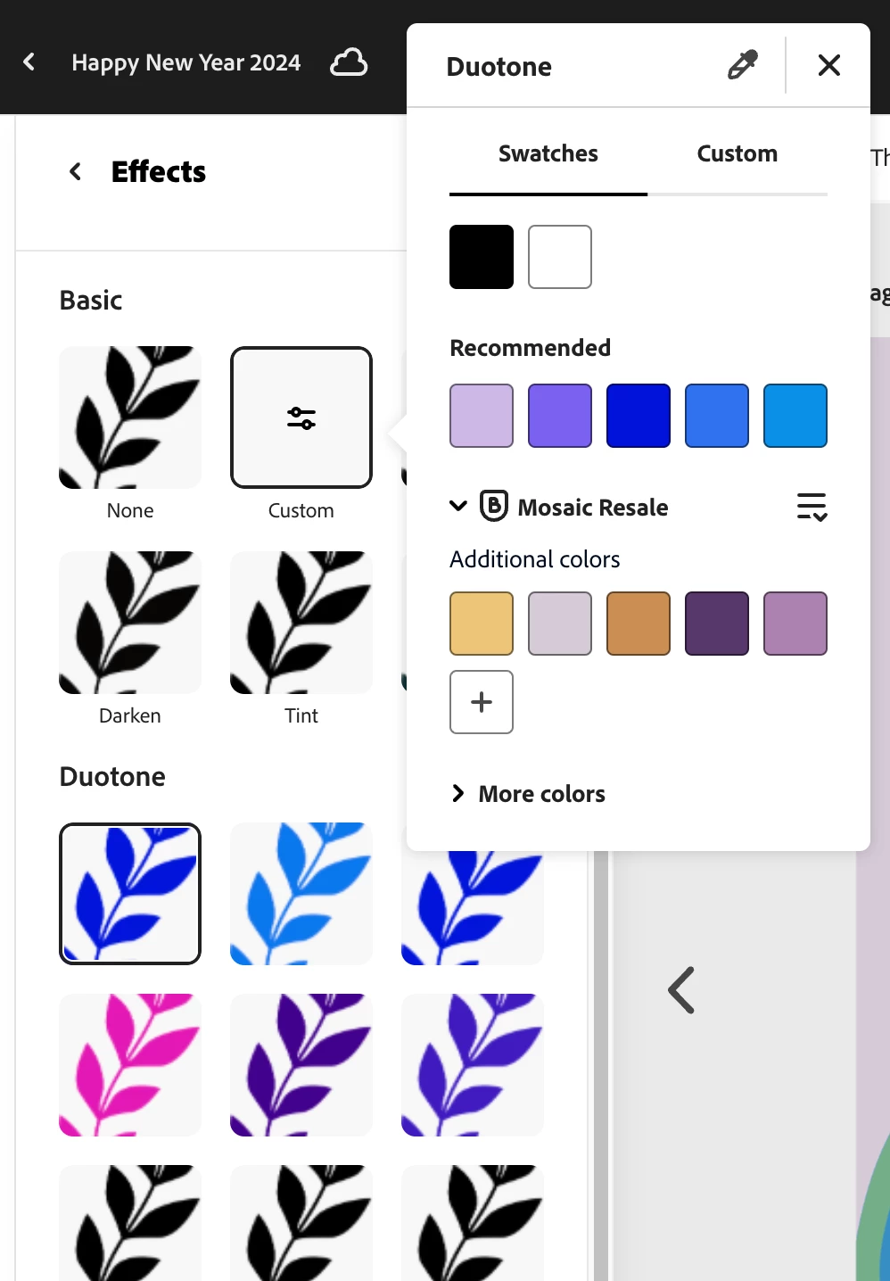 Yes, I have forced reloaded (Shift+Cmd+R), closed browser, performed multiple cache clears, tried on other projects - and the Duotone two custom swatches is still unavailable, as well as the custom button being in a rather strange spot.