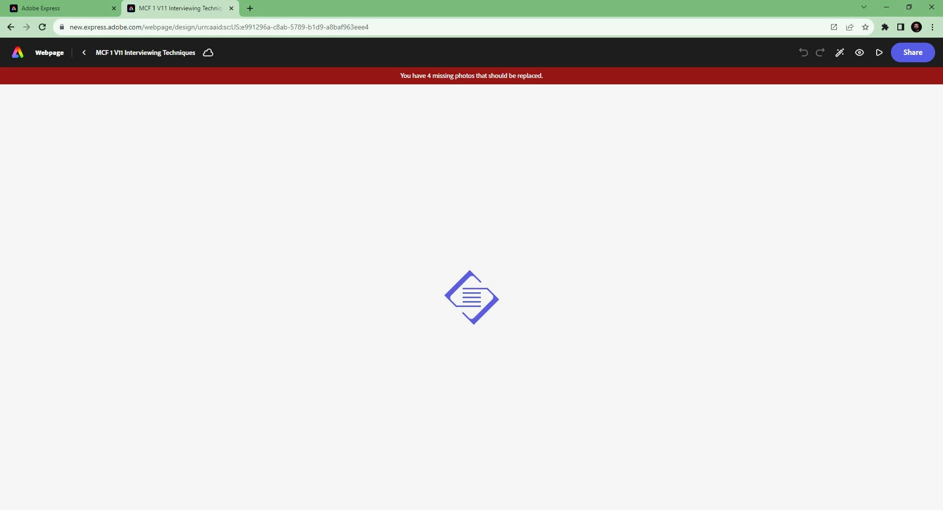 Ddefault33261355t3cmv5ParticipantForum|Forum|2 years agoOctober 30, 2023Edit Adobe Express Web PagesForum|Forum|2 years agoOctober 30, 20230 replies73 viewsOnce the file is selected, the screen just keep loading and then times out.Performance