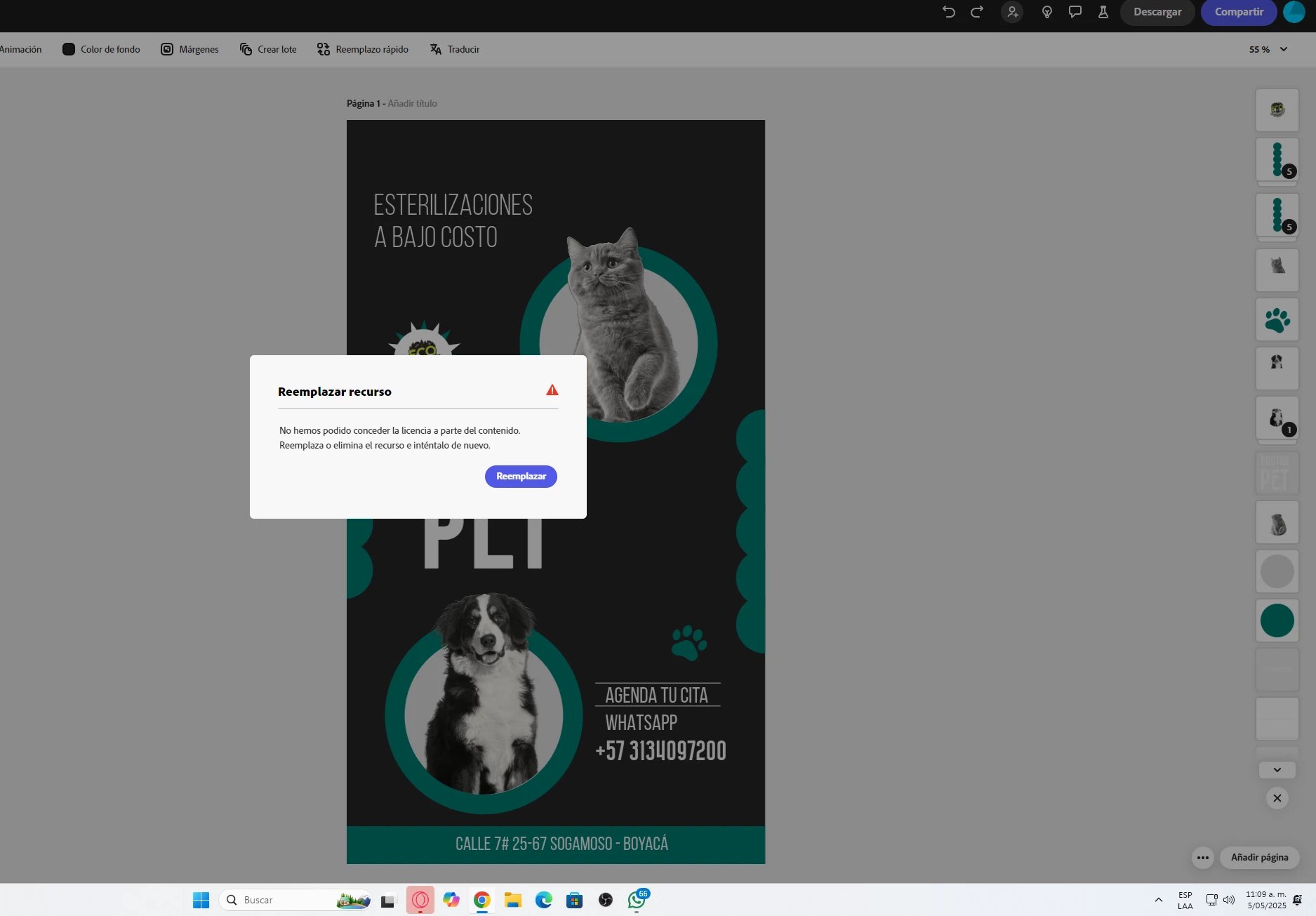 Edite una de las plantillas de adobe express y al momento de exportar me ha aparece un mensaje que no han podido conceder la licencia. Estoy pagando por esto y me parece un robo este tipo de errores.