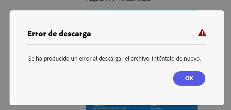 Ddefault32523347uaq6l1ParticipantForum|Forum|2 years agoSeptember 25, 2023ERROR AL DESCARGAR EN FORMATO .PDFForum|Forum|2 years agoSeptember 25, 20231 reply201 viewsUtilice una plantilla de curriculum y al descargar en formato .pdf se queda en 90% del proceso de descarga y salta un cartel de error (imagen adjuntada)PDF