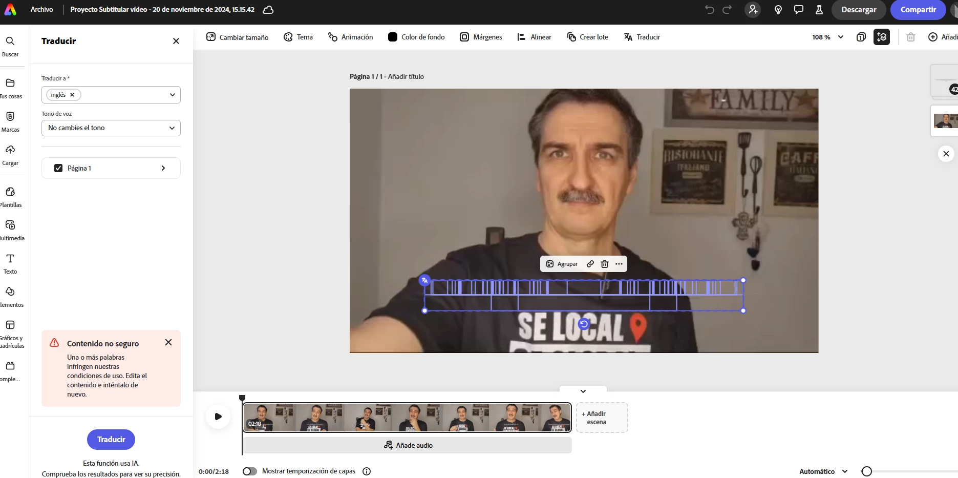 Estoy intentando traducir un video de español a inglés y me devuelve un error de que alguna palabra infringe las reglas, y aunque reviso el texto no veo ninguna palabra inadecuada. Que puedo hacer?