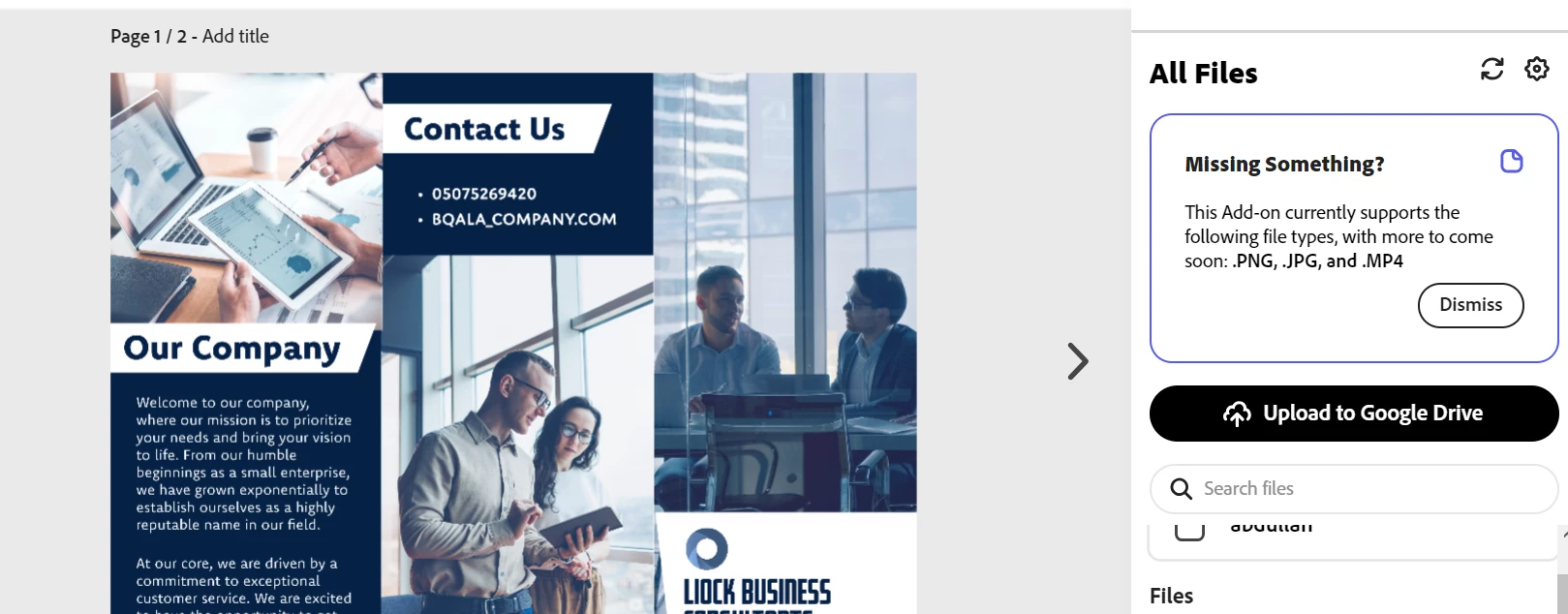 Guys, I found the way you can use a third-party app, like connecting Google Drive to Adobe. You're wondering how I could do that. 1. Search for add-ons (usually on the left).