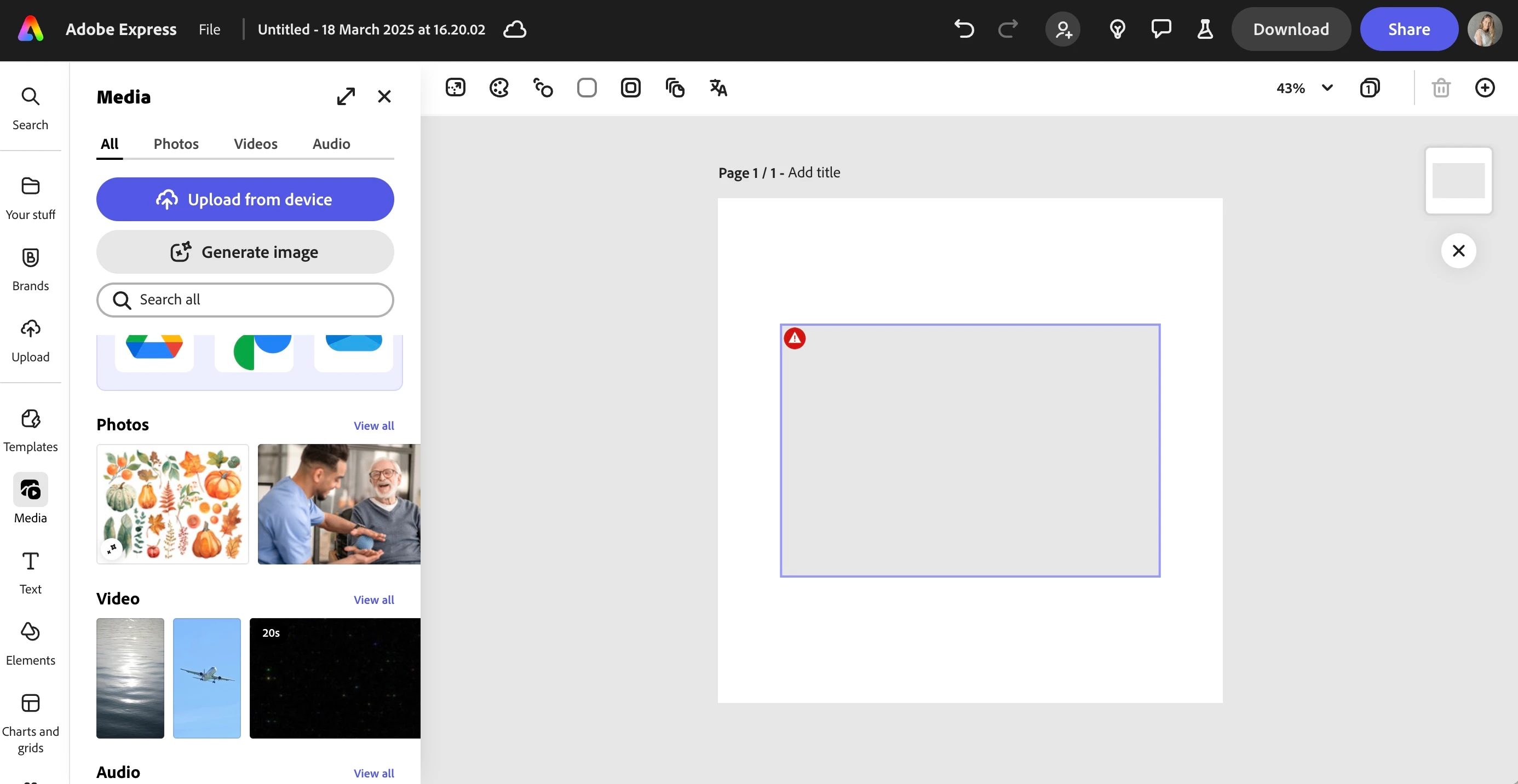 Hey @Indre28536758yll7, Thanks for sharing the details; I suggest you update the iOS device to the latest version to get a seamless Adobe Express experience. Please refer to Adobe Express Mobile: Important updates & device requirement changes.