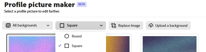 When i export a profile maker in https://new.express.adobe.com/home/tools/profile-picture-maker then it export not round but in a square.
