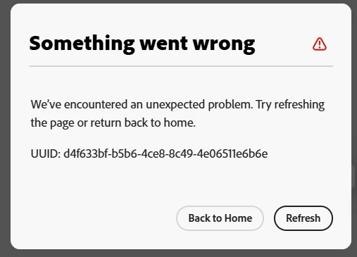 I am working with the Adobe Express web app to make a publication. I need to copy or duplicate pages or elements within the page to other parts of the document. Every single time I do so, I get this error and I have to refresh or go back to home and open the document again. When I open the document again, the thing I need to copy is not on the clipboard.