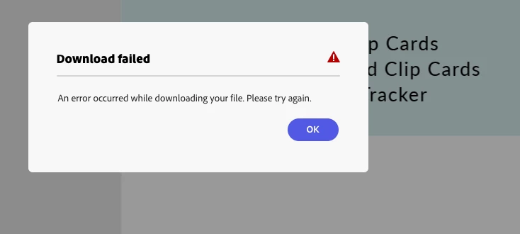 My file called Weather Clip Cards. Will not download as a pdf file. How do I troubleshoot? It originally was a larger file. I decreased the number of pages on it, but this part still will not download. Thanks Hannah