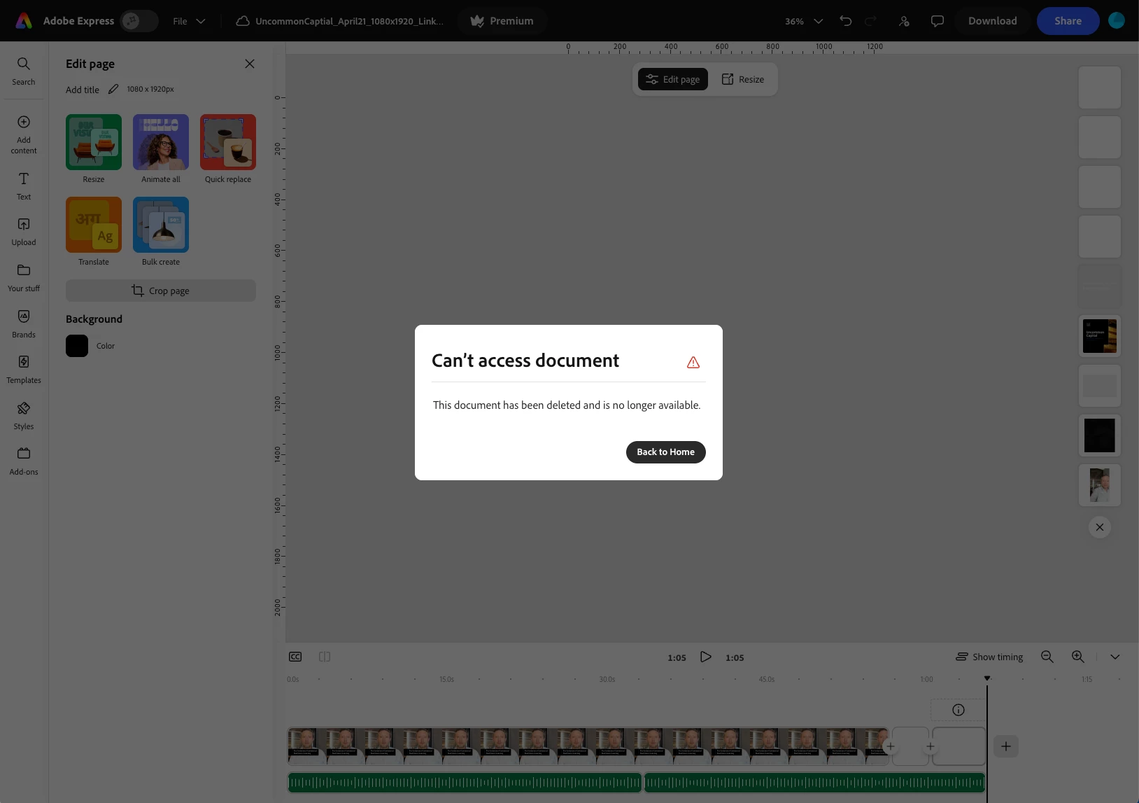 This has happened to me twice, I have created a captioned video for social media. I completed the video and downloaded, then come back another day to make additional edits or revisions and my file has been deleted, not by me. It can not be found in my deleted files in Creative Cloud either.