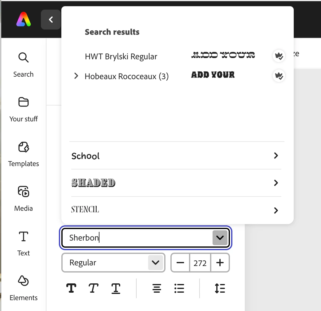 Ddefault319182553m5o7pParticipantForum|Forum|2 years agoAugust 27, 2023Font TroubleForum|Forum|2 years agoAugust 27, 20231 reply249 viewsHi there. I've downloaded a font on Creative Cloud, but it is not showing up when I look for it in Adobe Express. Did I miss a step?Performance
