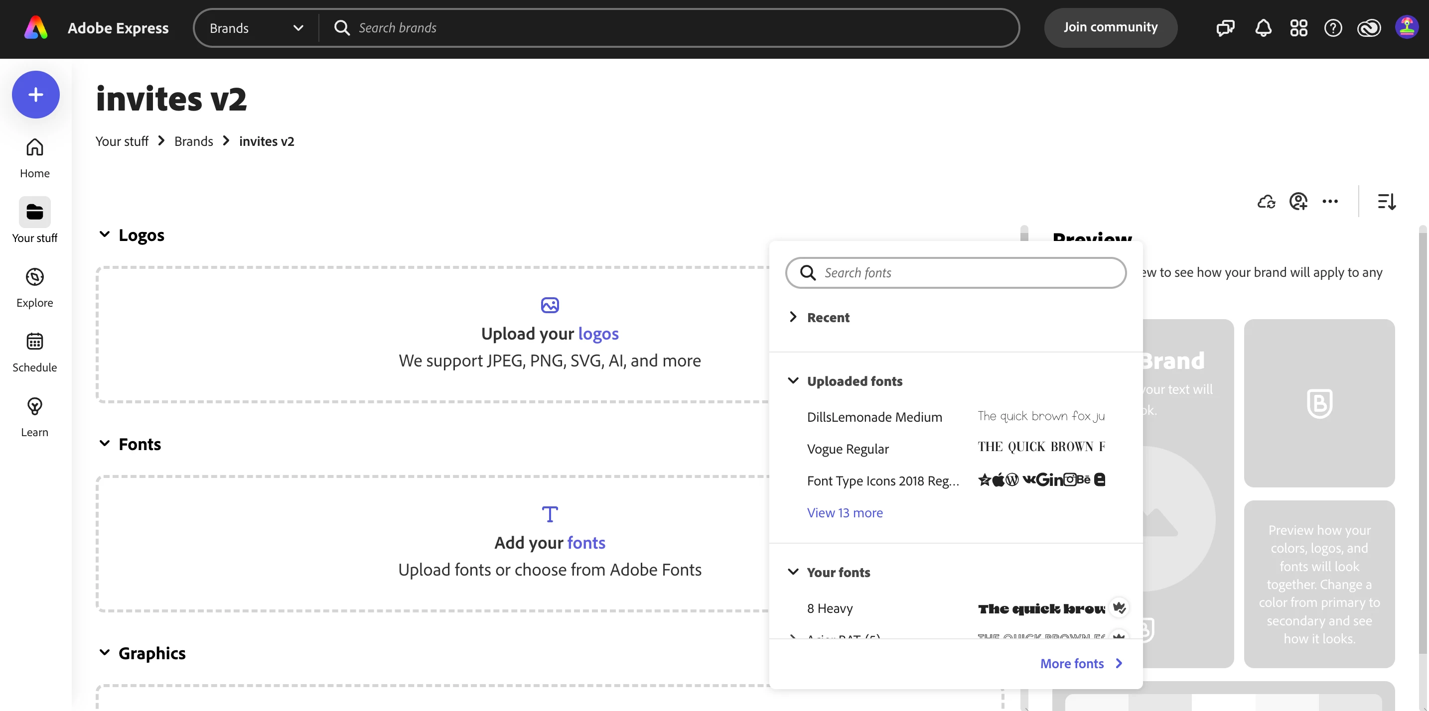 RRandi255419900c24ParticipantForum|Forum|2 years agoJanuary 31, 2024FontsForum|Forum|2 years agoJanuary 31, 20241 reply154 viewsI am unable to add a new font to my brand. There is no option to upload new font in the drop down menu and I can not drag and drop. I've cleared my cookie based on what the customer service rep told me but it still doesn't workDesktop WebPerformance