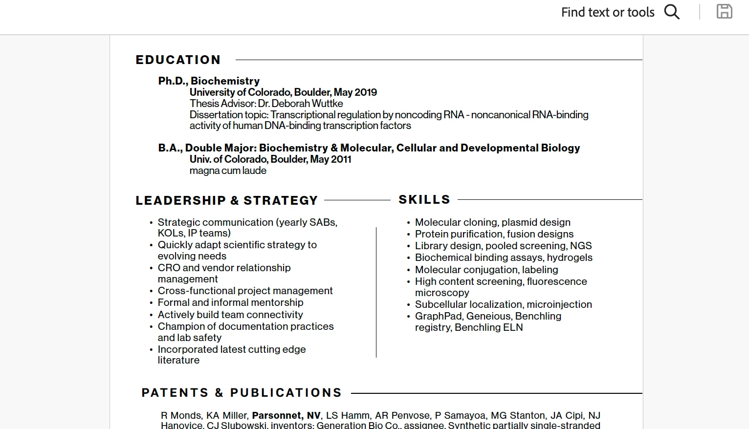 ^ as its shown in Adobe Acrobat upon export. Notice the skills column at right jumping up so it no longer aligns