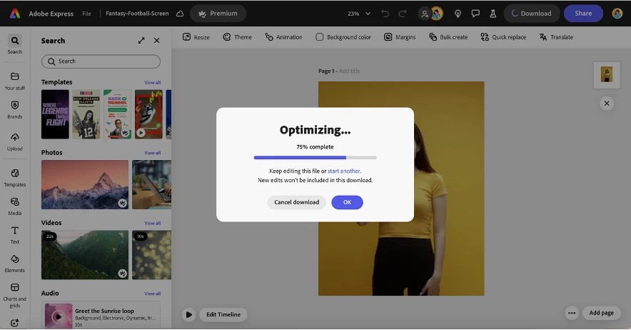 I’m unable to download my video on Adobe Express. The process always fails at 75%, showing an error message and preventing the download from completing. I deleted cache, cookies, restarted my computer (mac), use chrome, safari, app, mobile app, and I still have de same issue.