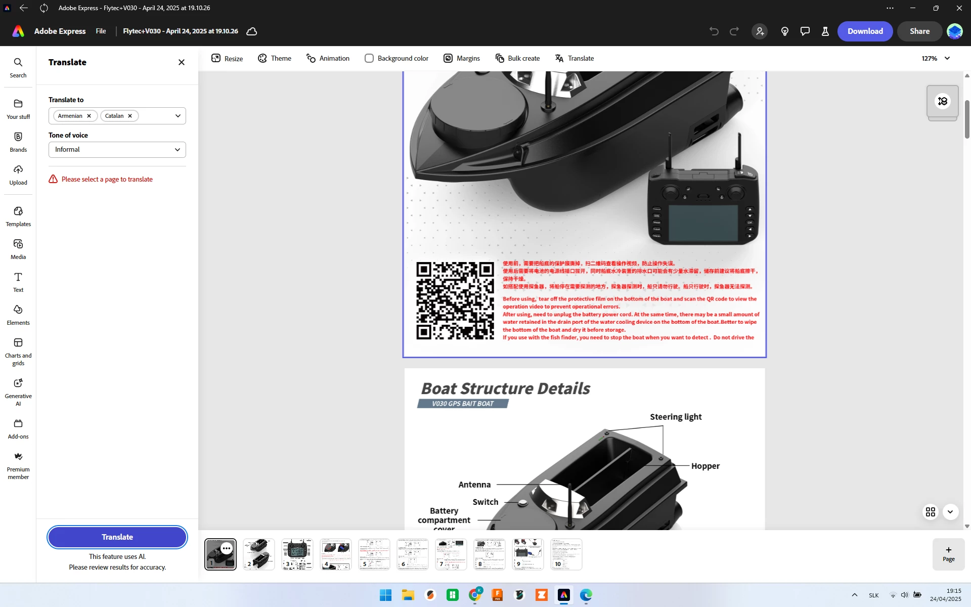 I tried incognito mode but it didn't work. I used a different pdf and it worked but with that one it didn't . I am sending my screen recording. Please help me to translate this document!