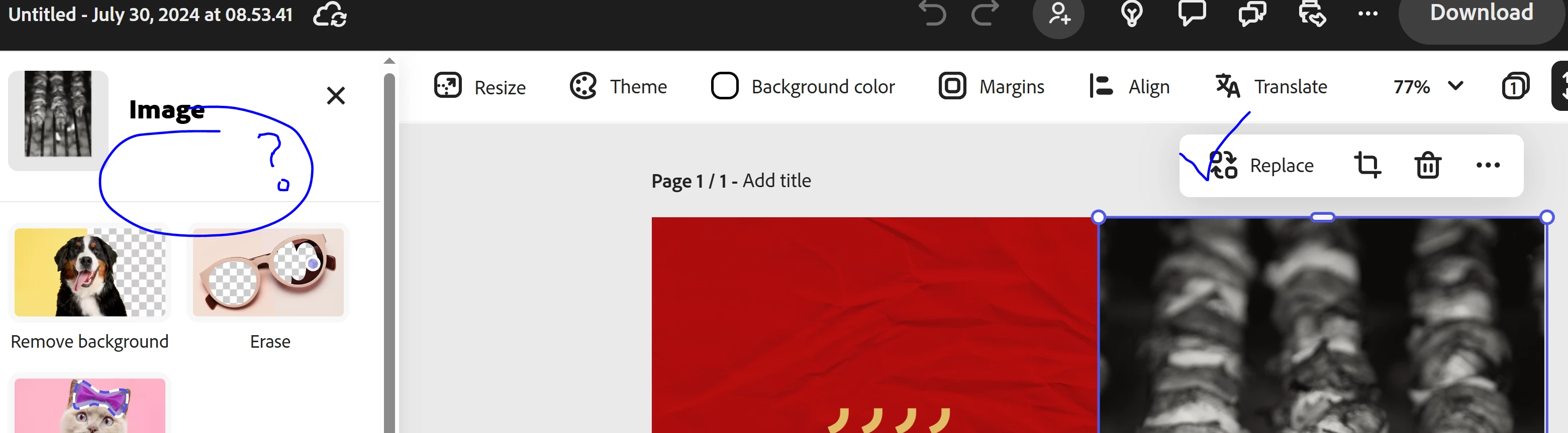 The image replacement button has vanished today when selecting an image, the sidebar is missing this critical function. Tried both Chrome and Edge. The replace image function shows on the popup bar when clicking an image that is NOT the background image. When trying to replace the background image, there is NO replace image button anywhere at all.