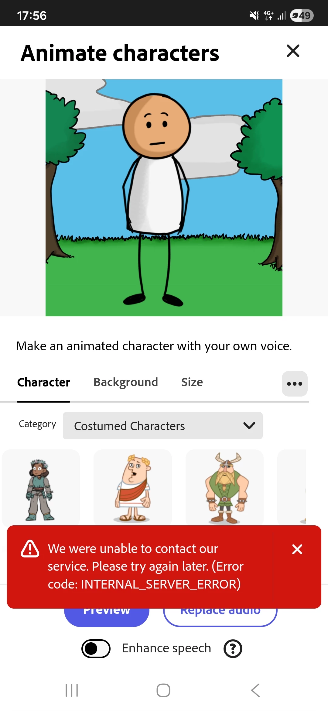 Aamine_6325ParticipantForum|Forum|4 months agoOctober 20, 2025Internal server error in Animate charactersForum|Forum|4 months agoOctober 20, 20251 reply63 viewsWhenever I try to use Animate characters, it's stuck on Submitting and after 1-2 minutes I get internal server error, I have already tried with force stop and clear cache but same result.Android