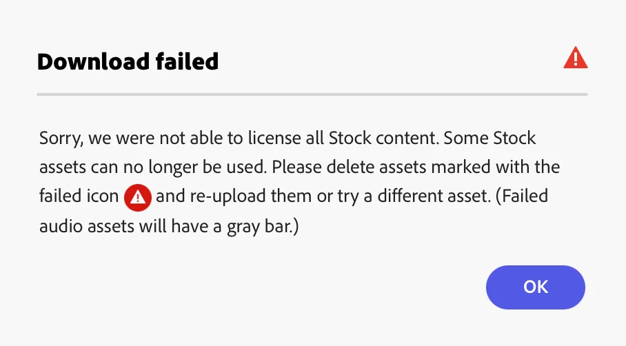 Hey guys! I tried downloading a video I had created with no Adobe Stock assets and got the attached error. Does anyone know why this is happening? Is it the shapes I am using?