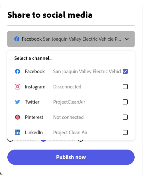 I don't want to post to the group page listed (San Joaquin Valley Electric Vehicle) I want to post to the work account of Project Clean Air. How do I unlink this group page? It would not let me "Reconnect" my FB page without adding permission to post in this group, but I don't want to post in this group, ever... please advise?