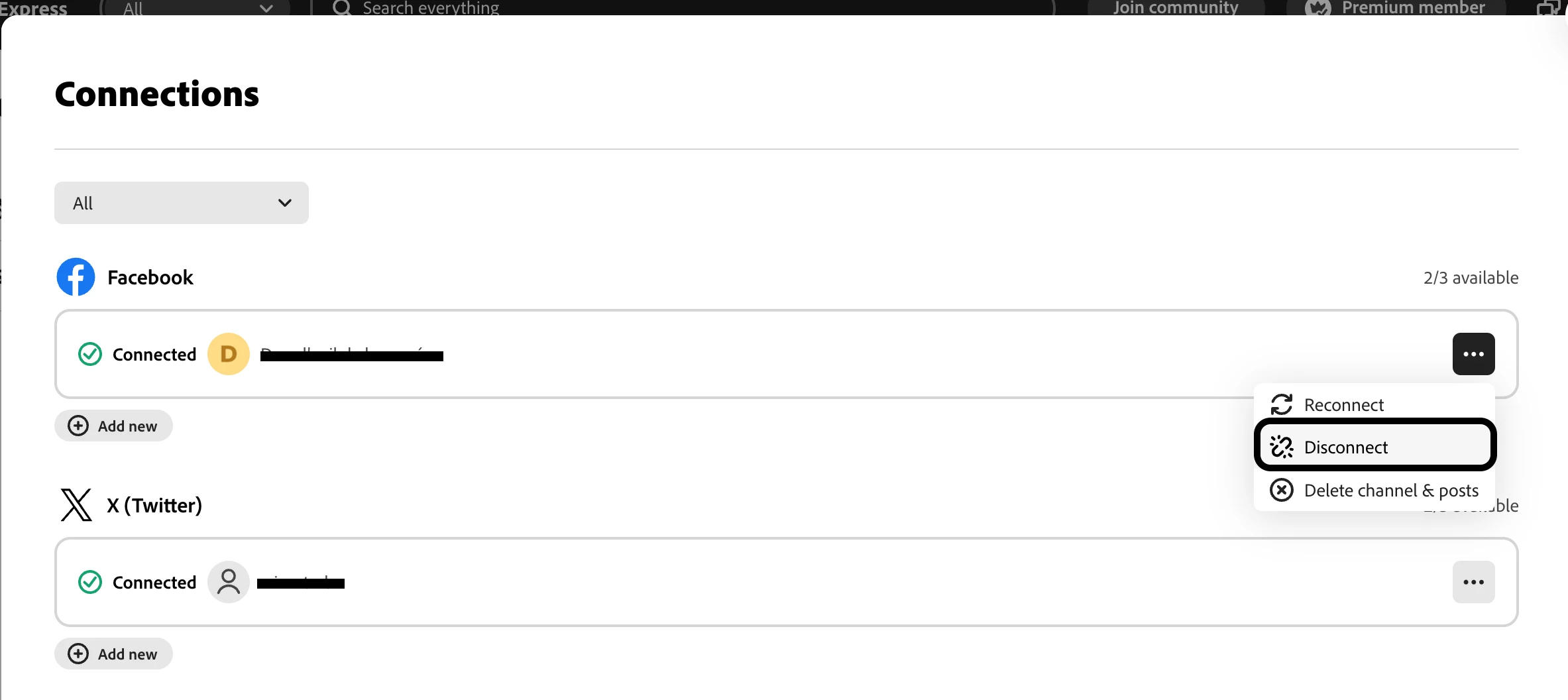 I have tried connecting my other facebook, instagram and tik tok accounts and it's only allowing me to connect to the existing accounts. It doesn't give me the option to select the others. It does however allow me to change linkedin.