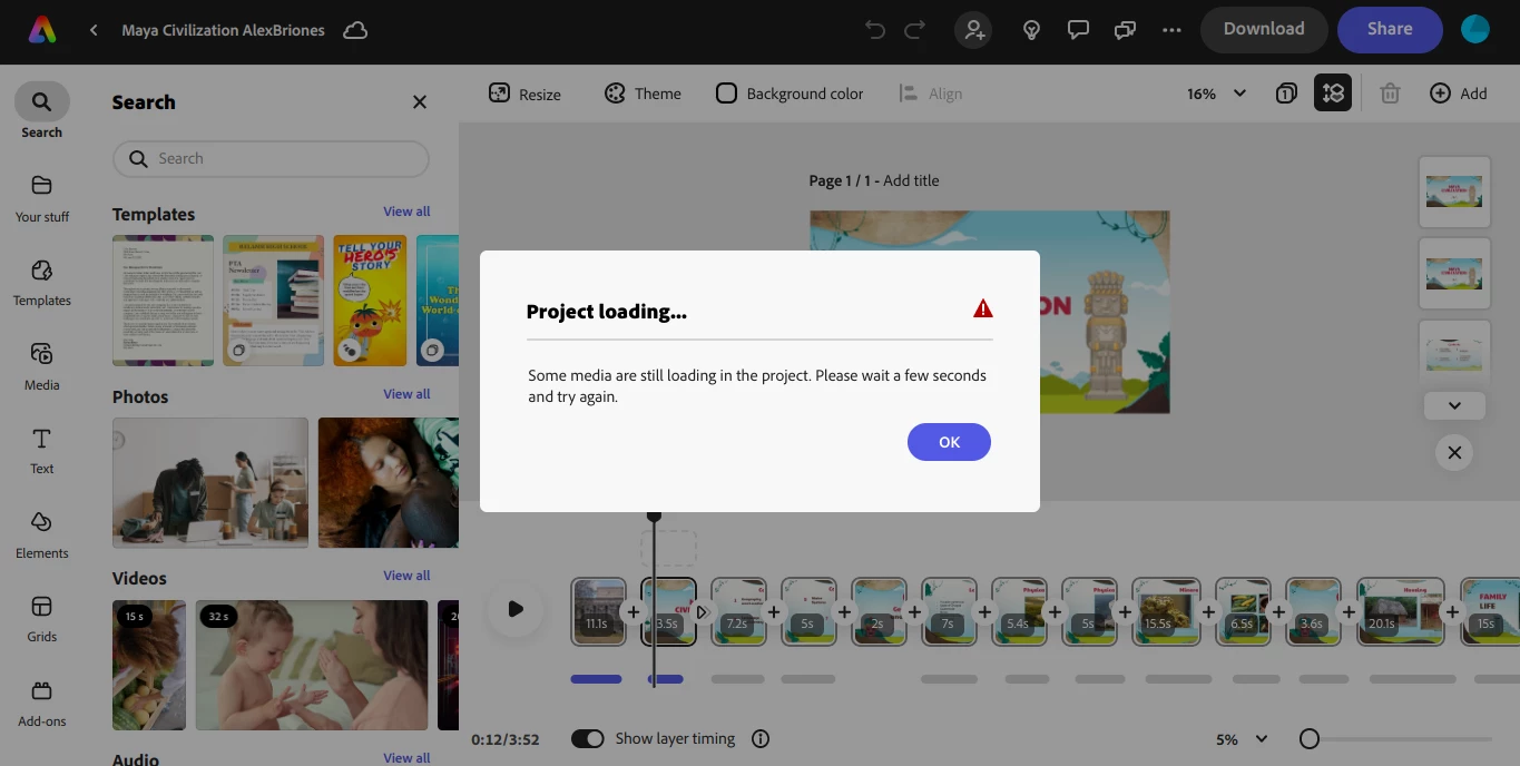 Ddefault32492107xbp2guParticipantForum|Forum|2 years agoSeptember 24, 2023Media PendingForum|Forum|2 years agoSeptember 24, 20230 replies62 viewsWhen I open my project, I click play, and it doesn't play my voiceovers. Instead, it shows this pop-up. I assume the media loading is grey, but I've been waiting for days and it still isn't loading. I have an assignment due. Please help!VideoPerformance