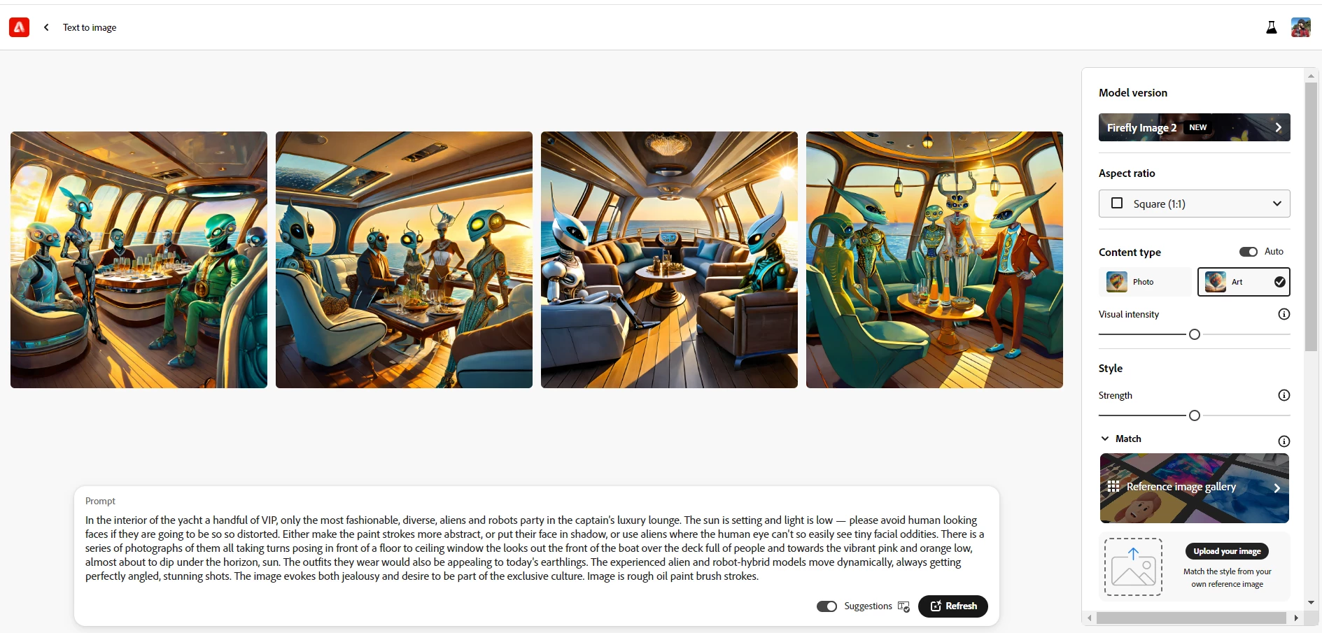 The weirdest prompts are being blocked. I have no idea what to even change about this one it said was problematic. It is frustrating to get error messages without an actual error explained because wtf are we to do? Here is the prompt: "In the interior of the yacht a handful of VIP, only the most fashionable, diverse, aliens and robots party in the captain's luxury lounge. The sun is setting and light is low — please avoid human looking faces if they are going to be so so distorted. Either make the paint strokes more abstract, or put their face in shadow, or use aliens where the human eye can't so easily see tiny facial oddities. There is a series of photographs of them all taking turns posing in front of a floor to ceiling window the looks out the front of the boat over the deck full of people and towards the vibrant pink and orange low, almost about to dip under the horizon, sun. The outfits they wear would also be appealing to today's earthlings. The experienced alien and robot-hybrid models move dynamically, always getting perfectly angled, stunning shots. The image evokes both jealousy and desire to be part of the exclusive culture. Image is rough oil paint brush strokes."