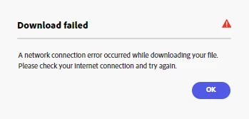 Download failed. A network connection error occurred while downloading your file. Please check you internet connection and try again.