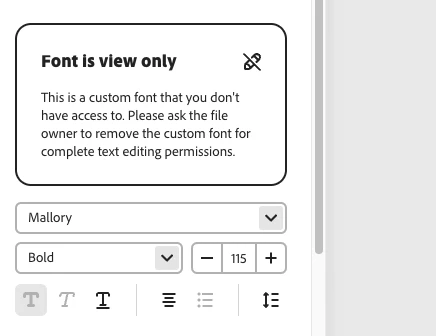 I am on a shared education account, and our university's custom fonts are no longer working ... even after we re-uploaded them to our library! I can see them in the dropdown of font options, but I can't actually use them. I get a message saying font is view only (see screenshot). They work fine in other Adobe applications like Photoshop, but not in Express. Our IT help desk can't help because it's an Adobe issue. Incredibly frustrating - this needs to be fixed!