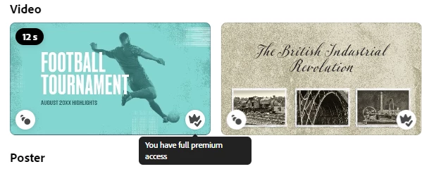 There are many free assets on Adobe Express, but there is also paid content. You can tell if it has a little crown icon in the right-hand corner. If you have a Creative Cloud subscription you might also see a check mark on the crown, indicating access to the paid content. Aer you using the free version of Adobe Express? Do you have a subscription?