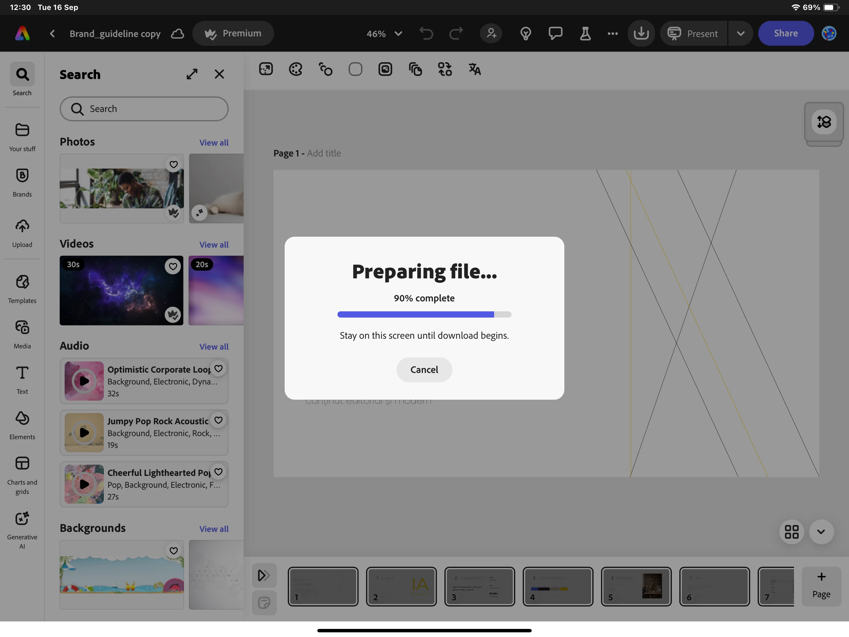 I can download .png just fine but PDF download freezes at 90%. I'm using it in browser and cleared my cache already. What can i do to fix this?