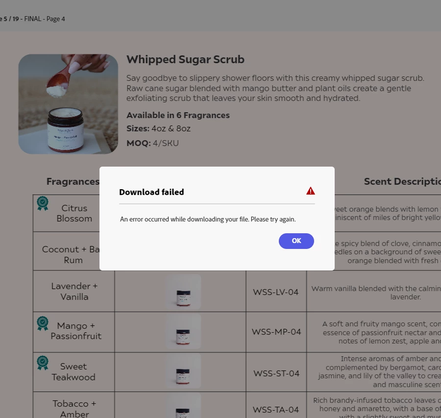 I'm sorry to hear that you're having trouble downloading your project as PDF. I haven't been able to replicate this.