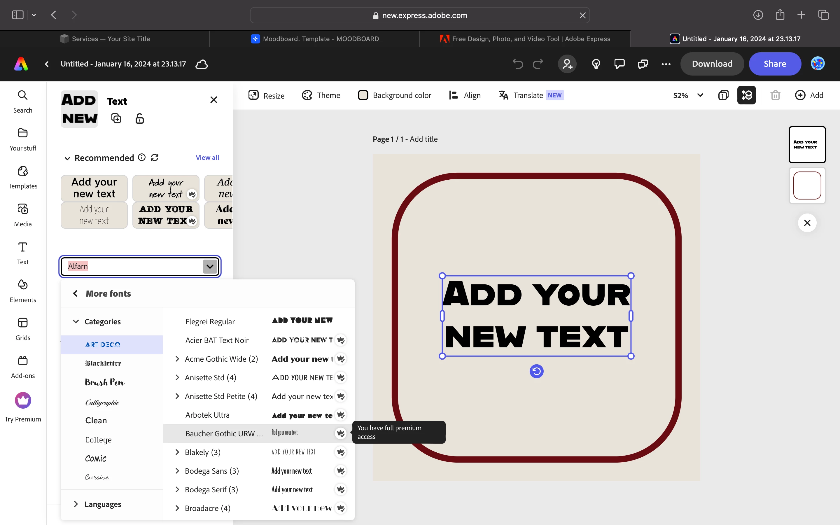 Ddefault3484421882vpjcParticipantForum|Forum|2 years agoJanuary 17, 2024PremiumForum|Forum|2 years agoJanuary 17, 20240 replies83 viewsI have the premium subscription and I'm still not able to use it. It shows that I have it but won't even let me use a font.Desktop WebSubscription