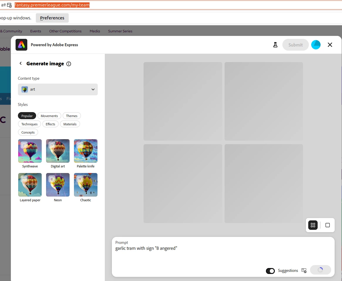 Problem with my team badge in https://fantasy.premierleague.com/my-team powered by adobe express?
