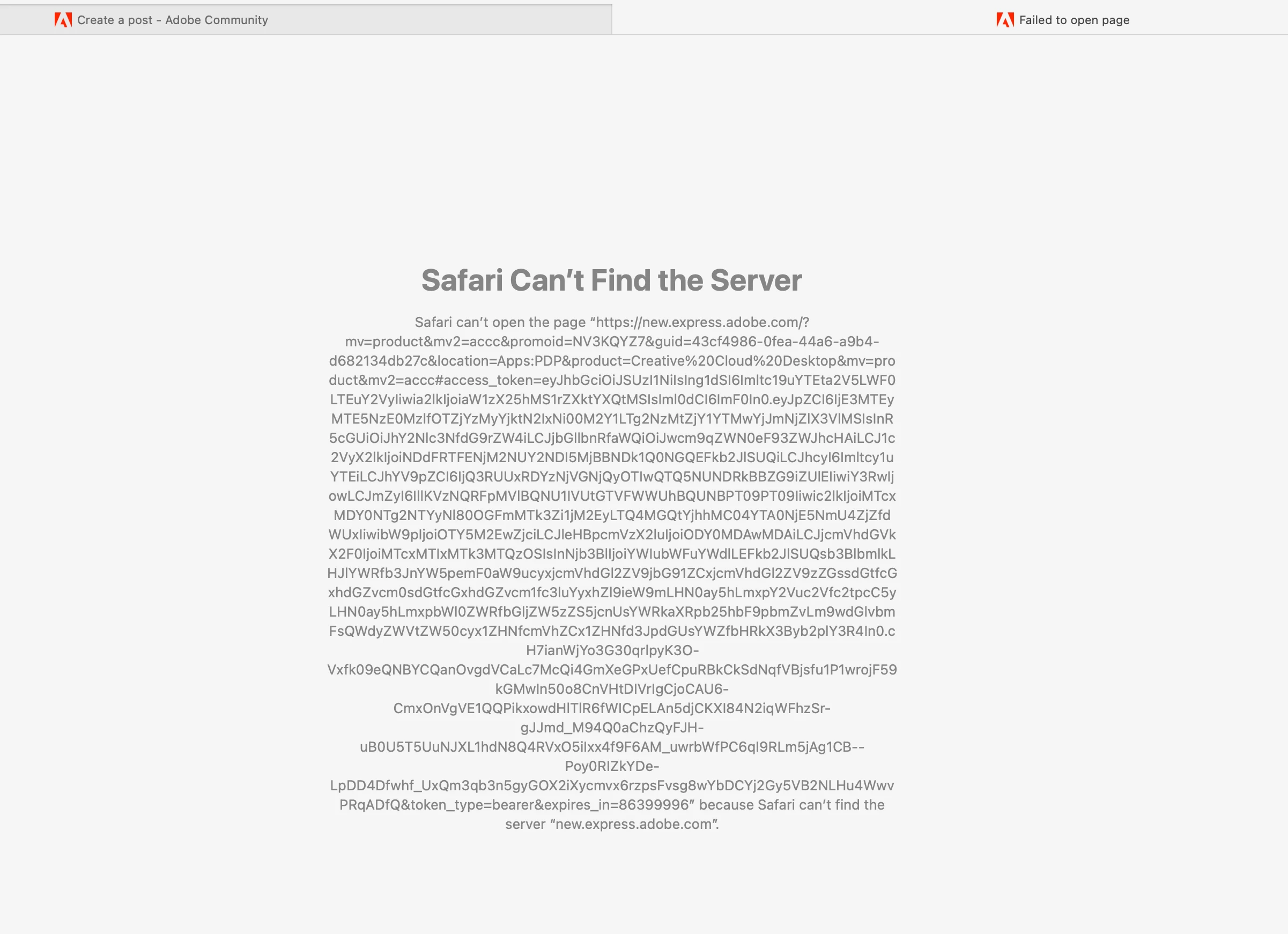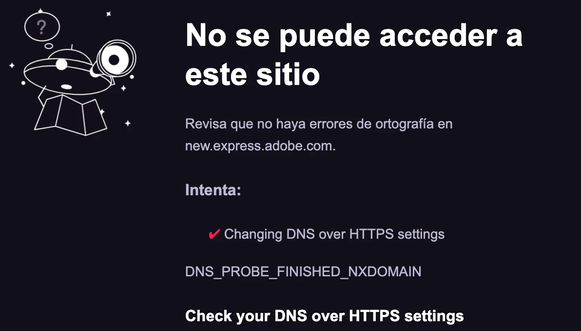 Hola comunidad; he intentado entrar a la plataforma de Adobe Express desde el Link del Creative Cloud pero no he logrado conseguirlo, me da un mensaje de error en el navegador, cual podra ser problema?